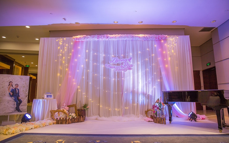 签到区:时尚绸缎搭搭建,唯美造型(颜色,造型任选);新人专属LOGO设计及KT制作;